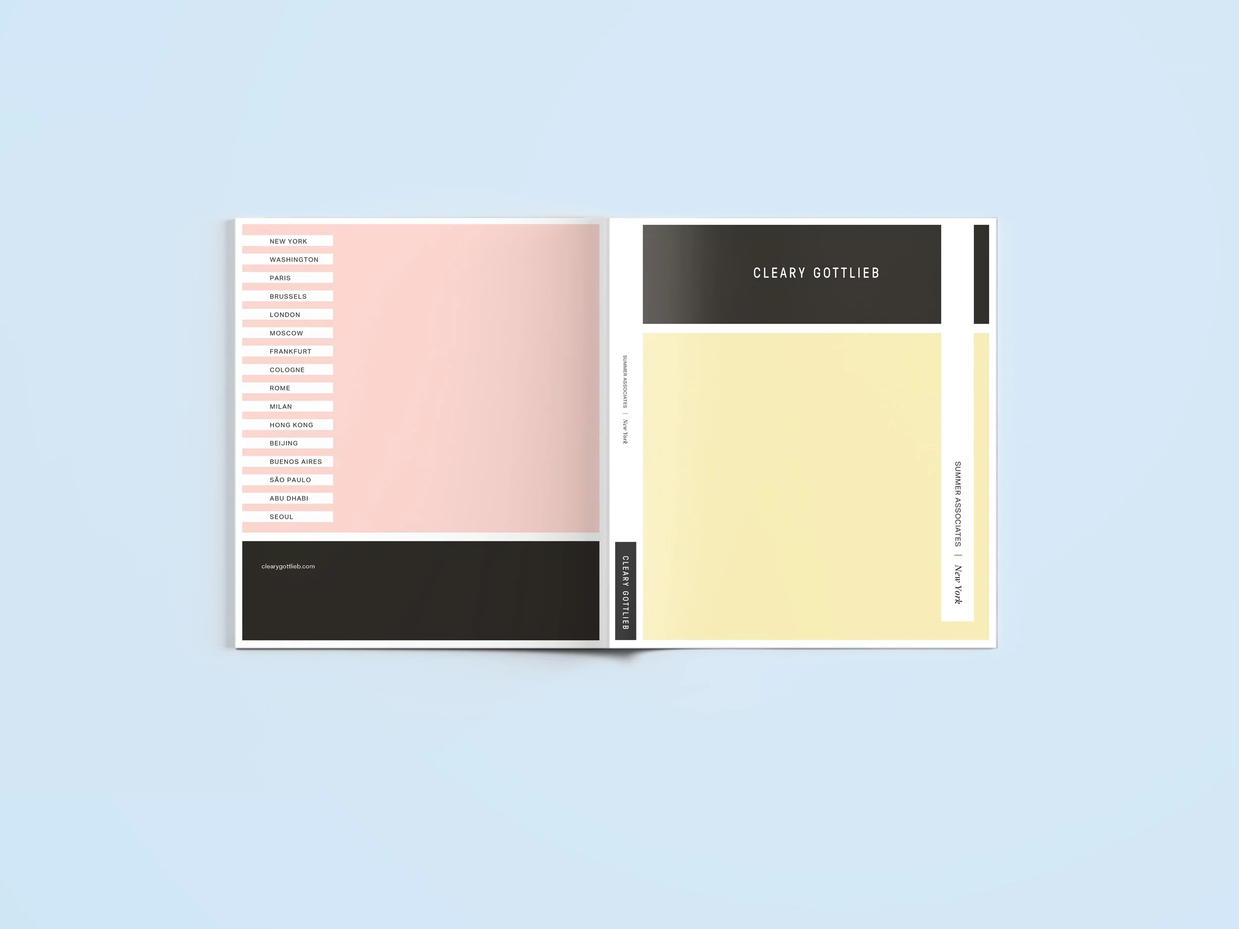 Every year at this international law firm, there is a program that welcomes potential future hires for the duration of a summer. What made this year's binder cover unique was that the company went through a re-branding.